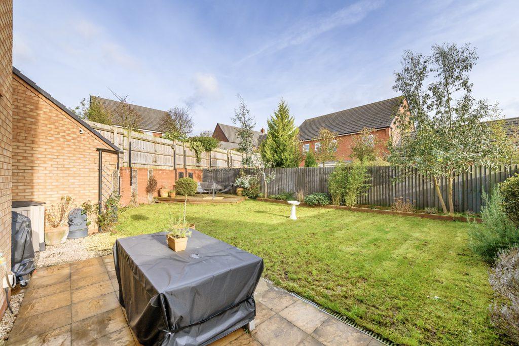 The rear garden has a laid patio area which leads to laid lawn with a planted border with both shrubs and trees. There is a raised decking area which is situated to enjoy the sunshine.