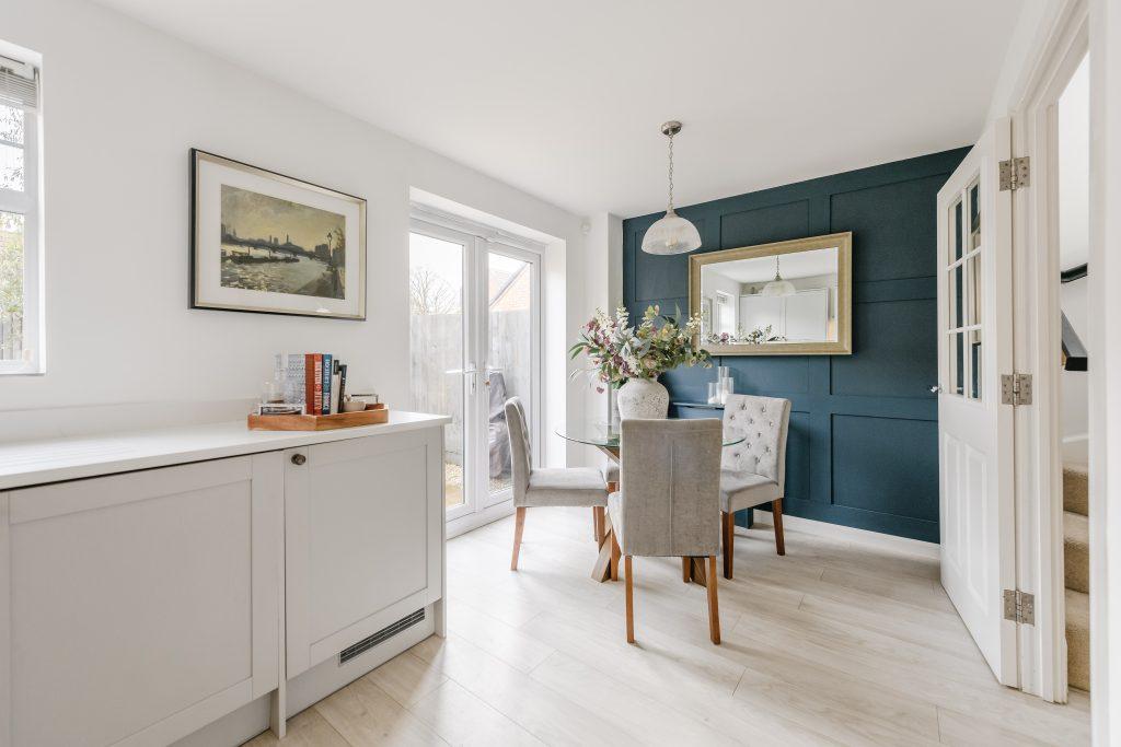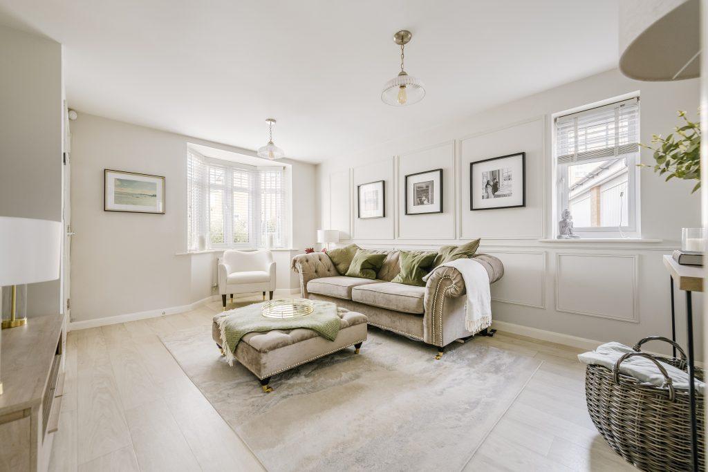 Having a bay window, wooden panelling to one wall and Amtico flooring.