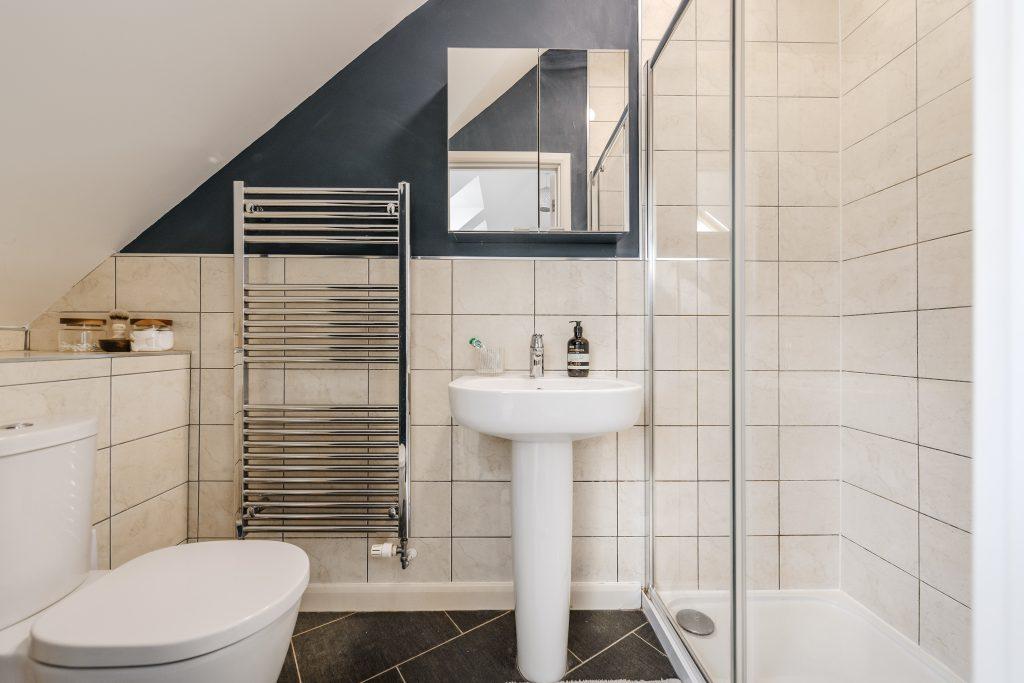 Moving to the second floor there is a large master bedroom, with two Velux windows and a further window and an Ensuite bathroom.