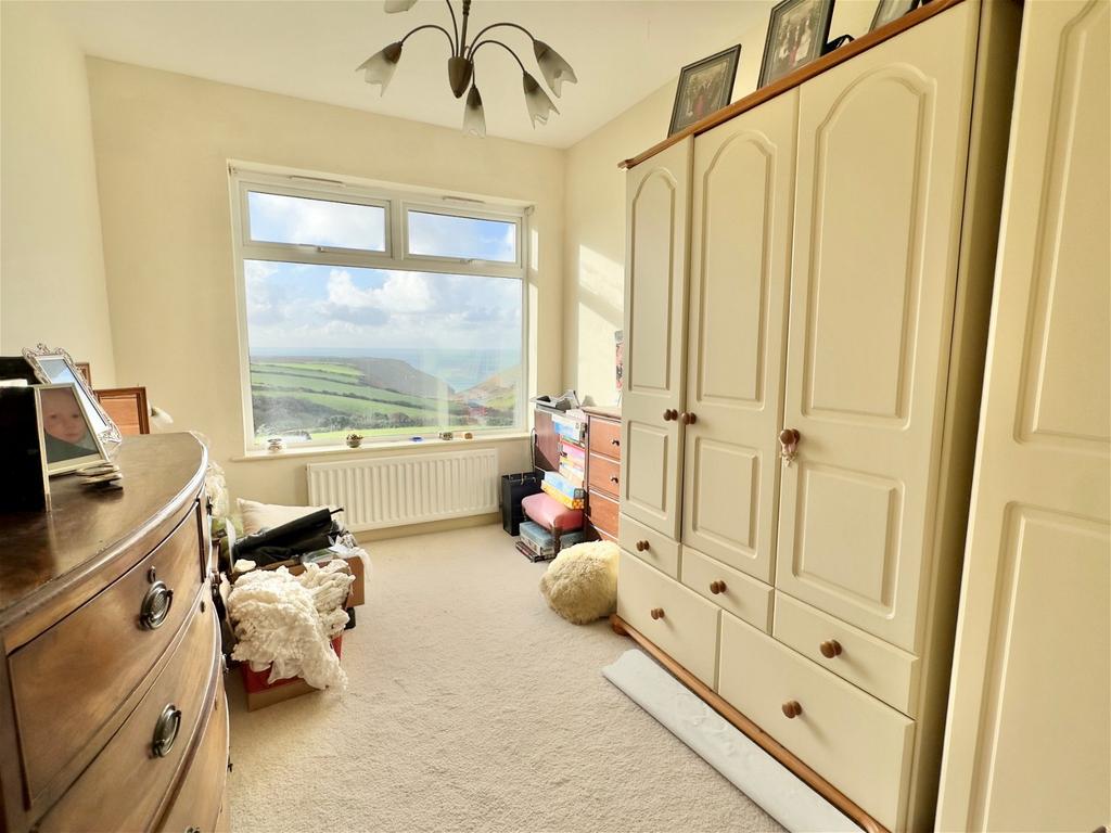 Dual aspect with double glazed windows in UPVC frames to front and rear framing outstanding sea and coastline views. Open fireplace with inset tiles and ornate timber surround. Radiator. T.V. point and telephone point.