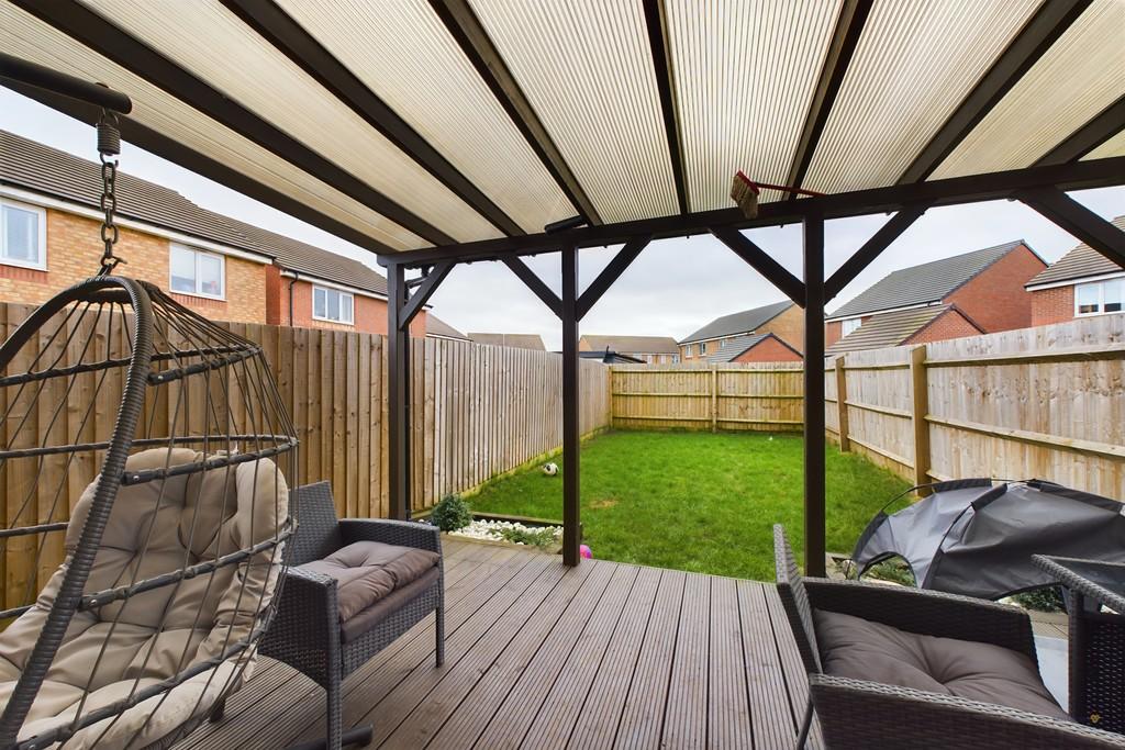 To the front of the property is a small lawned area with a variety of plants and shrubs along with a paved pathway leading to the front door. To the side of the property the off-road parking area for two vehicles, and to the rear of the property is a fully enclosed garden with a covered decked seating area and lawned garden.