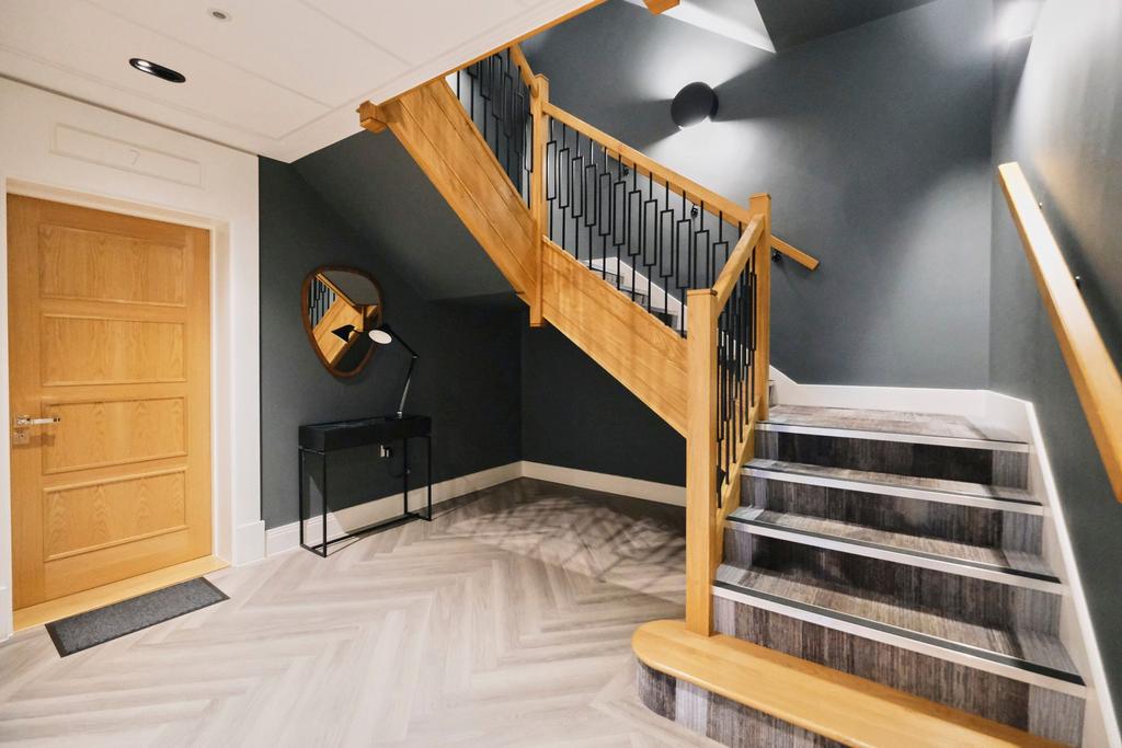 Premiere suite contains a large double bedroom with Velux blinds, walk in wardrobe with range of fitted shelves and hanging space and ensuite shower room; fully tiled with large shower, W.C and wash hand basin.