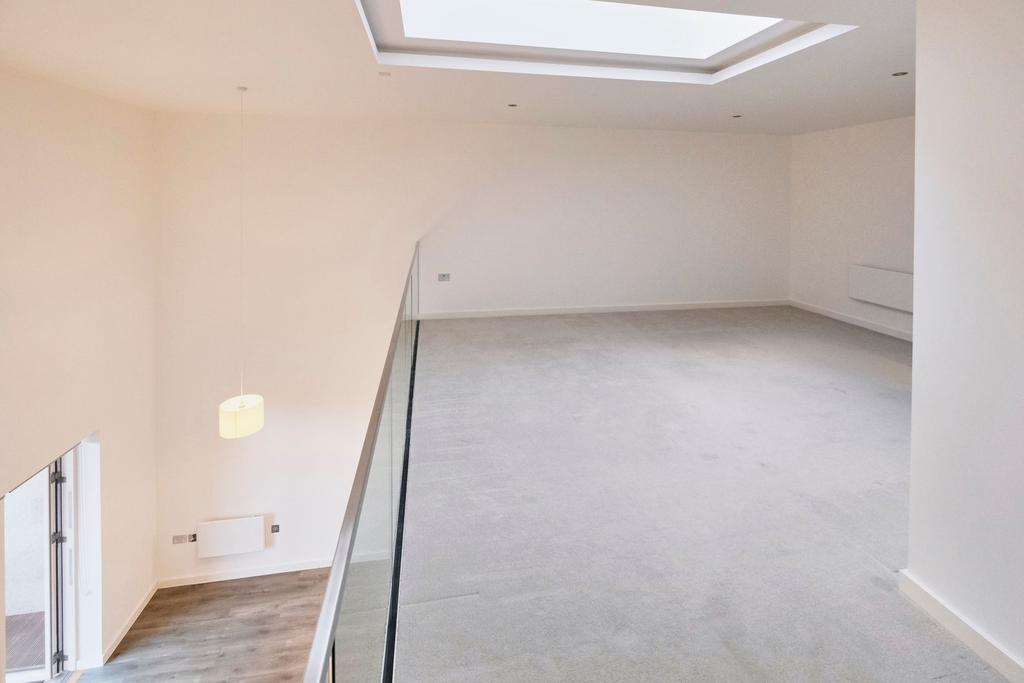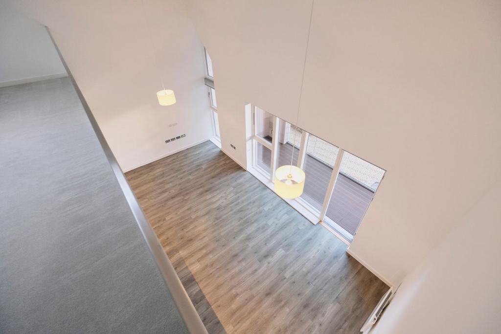 Downstairs entrance foyer accessed via video intercom and coded entry system. A wonderful open kitchen and dining room with plenty of natural light, double height ceiling ( with mezzanine living space above) and doors leading on to balcony. Kitchen includes extensive range of high and low level units. Miele appliances to include oven, microwave, ceramic hob, fridge/freezer and dishwasher. Upper level living room is a large room with ceiling lantern light and Mezzanine floor overlooking the below kitchen diner and snug space.