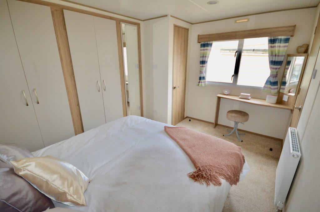 The main bedroom spans the full width of the Holiday Home and comes complete with an on-suite W/C, there's generous storage, full sized wardrobes, mirrored dressing area and a built in headboard.