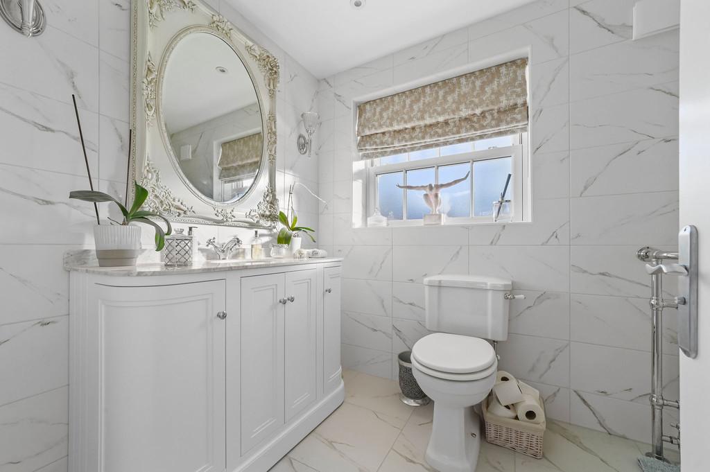 As you ascend to the first and second floor landings, you will discover four generously sized bedrooms, two of which have en suite bathrooms, and a family bathroom.