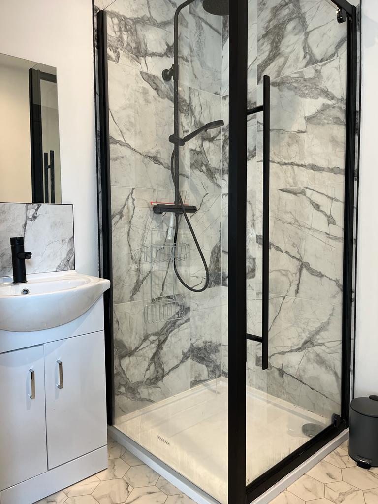 all newly furnished. Each Bedroom has its own allocated bathroom. The spacious lounge comes with two large sofas, a dining area and an LCD TV. The newly fitted kitchen is finished with brand new appliances including a dishwasher, the property also benefits from a washer and dryer. The property is enhanced from uPVC double glazing and gas central heating. There is a secure bike store located on the ground floor.