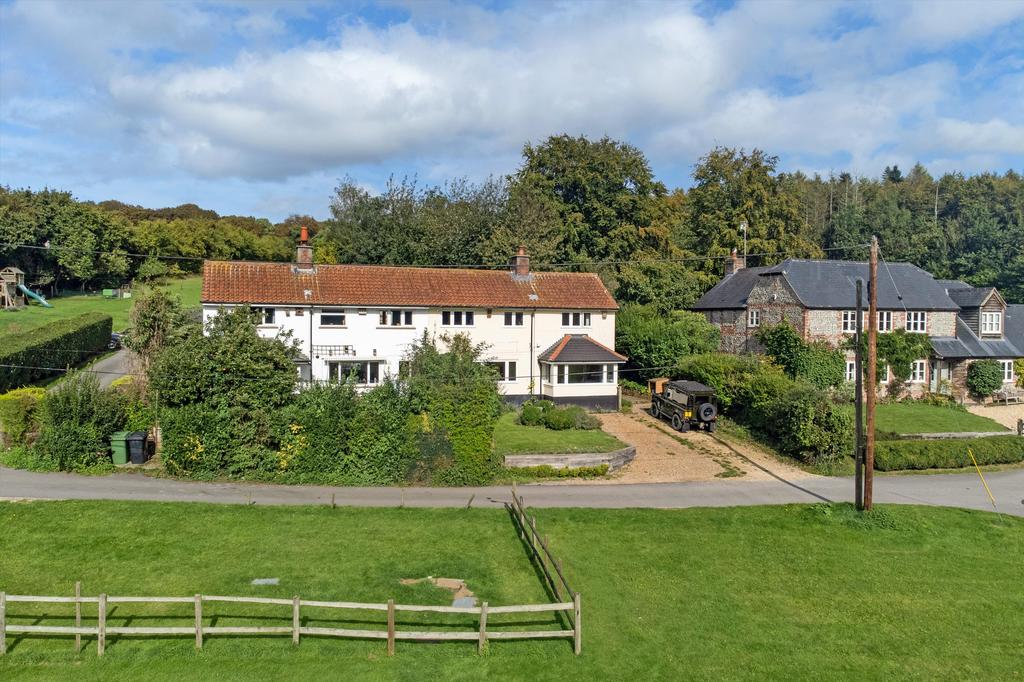 The double-aspect sitting room has a wood-burning stove, and the playroom has a Jetmaster fire and wonderful views over the field and woodland beyond. The well-appointed kitchen/dining room has several integrated appliances, a range cooker and a pantry. There is a spacious utility/boot room with a clockroom.