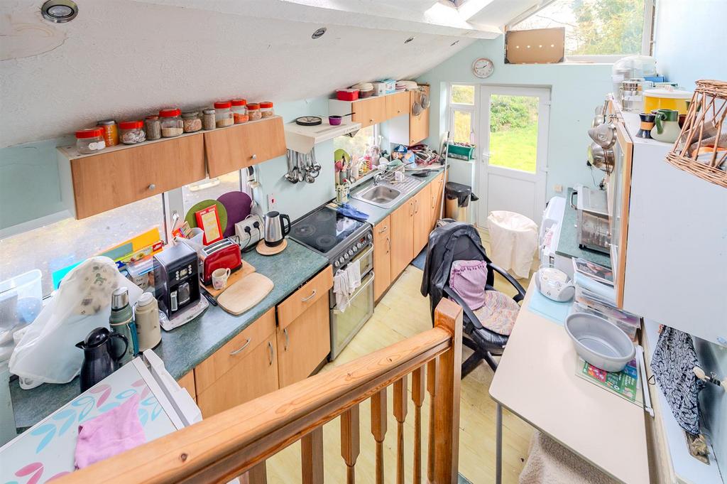 An entrance door gives access to a entrance hall which has several storage cupboards and doors to the accommodation. The lounge is a generous size room with a feature open brick fireplace and patio doors gives access to the rear garden. There is a unique dining area which overlooks the kitchen where there is ample space for a dining table. Steps lead down to a good size kitchen which is fitted with a range of wall and base units, there is a built in sink unit and there is ample of space for appliances. There is a wall mounted gas boiler, part tiled walls and a window overlooks the rear garden.