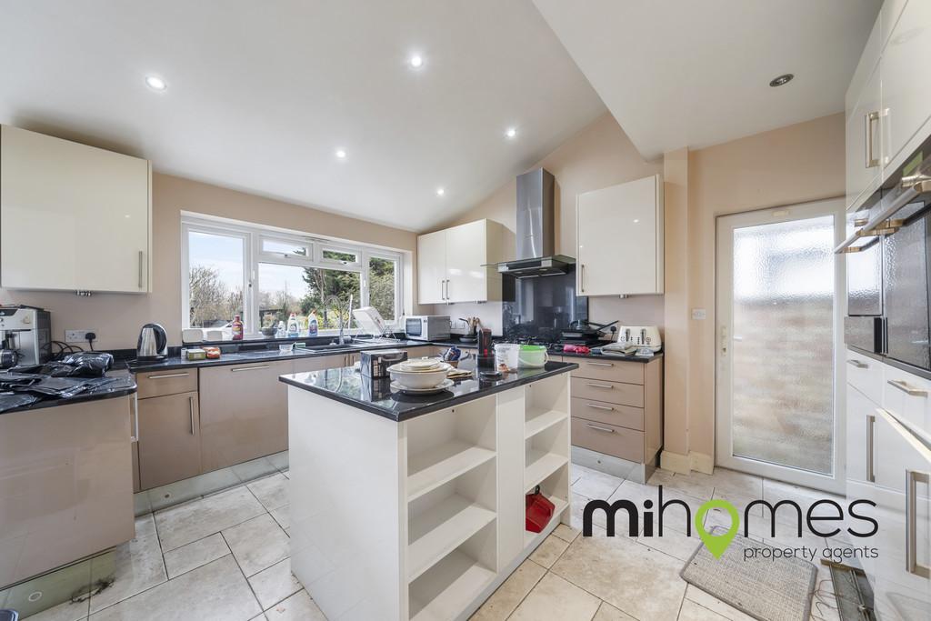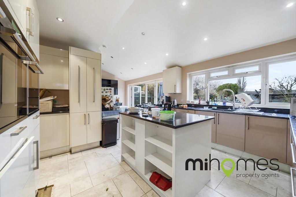 The kitchen is well-appointed with a range of storage options, workspaces, and a convenient central island with a breakfast bar. Integrated appliances and fitted cupboards contribute to a seamless design, catering to the needs of family living and entertaining.