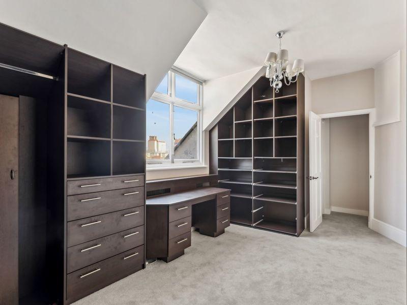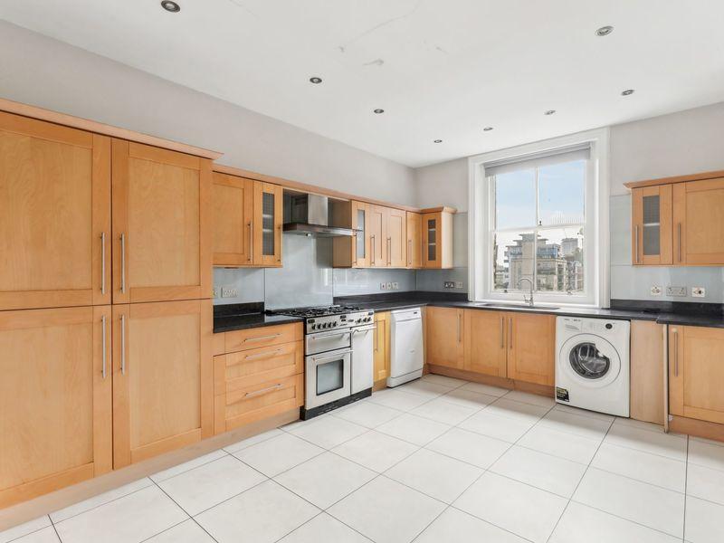 This five bedroom duplex apartment is set over the fourth and the fifth floor of the building and spreads over 3530 sqft of space. The apartment opens to a long hallway giving an instant feeling of grandeur and vastness. To the left of the hallway is a double reception with nice big windows allowing a lot of natural light into the property. The kitchen is spacious and full fitted. There are three bedrooms at this level with ensuite bathrooms. There is a further cloakroom along the hallway for the use of guests. The upper floor offers two further bedrooms with ensuite bathrooms. There is further storage space at this level.