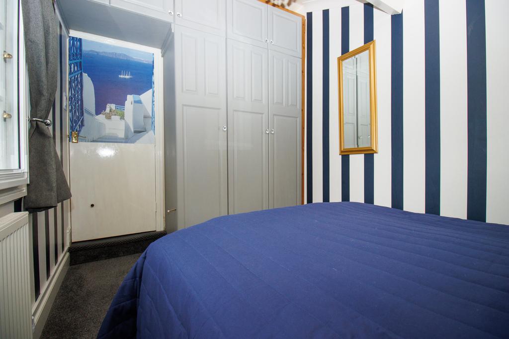 Fitted wardrobes and cupboards. Radiator. Secondary double glazed sash window with views over the village to the sea.
