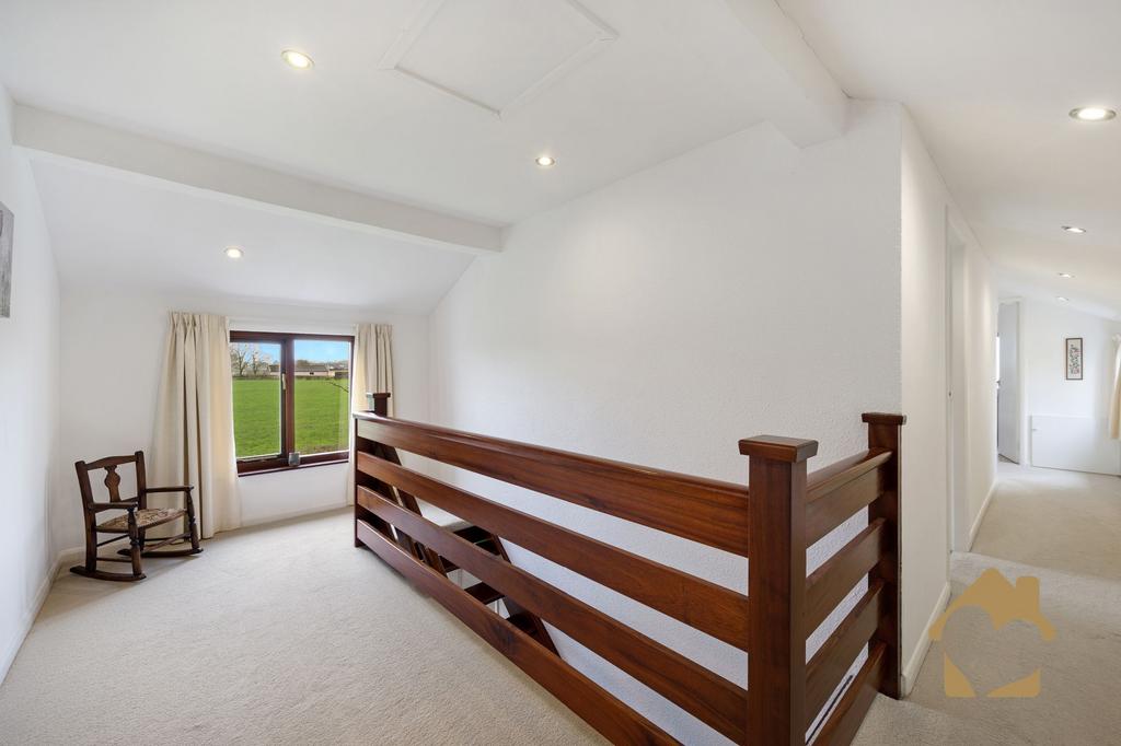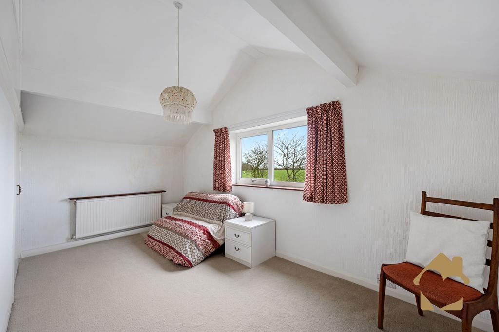 Bedroom one impresses with its generous size, equipped with storage cupboards perfect for wardrobes or additional storage. A window to the rear elevation frames picturesque countryside views, while a small doorway leads to additional space, formerly utilised as a bedroom. Although not officially designated as such due to access constraints, this versatile room offers a window to the side elevation, overlooking the expansive three acres of land. With storage cupboards, shelving, and a radiator, it presents an ideal space for various uses, from storage to a dressing room.