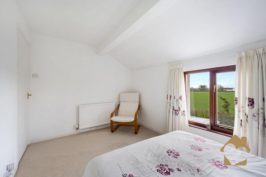 Bedroom two continues the theme of ample space, boasting a window that frames rolling fields, along with practical features like storage, electric sockets, and a radiator. Bedroom Three, though slightly smaller, offers a charming window with captivating countryside views, fitted storage cupboards, a radiator, and electric sockets.
