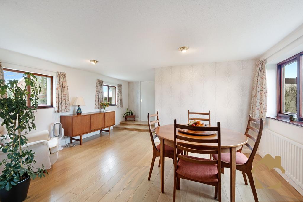 Upon entering the home through the formal entrance, you are warmly welcomed by an inviting hallway that sets the tone for the entire home. This light and airy space establishes a seamless connection with the abundance of natural light that graces the home. The entrance hallway is thoughtfully designed with a window to the front elevation and another to the rear, ensuring a continuous flow of sunlight. Practical considerations include broadband access points, electric sockets, and a radiator, catering to modern living needs. The flooring, an oak-effect laminate, extends gracefully across the majority of the ground floor living spaces, adding a touch of timeless elegance to the surroundings and a staircase leads to the first floor. A door to the left beckons you into the dining room and kitchen, and to the right, another door leads to the living room and the adjacent conservatory, offering a seamless transition between indoor and outdoor living spaces.