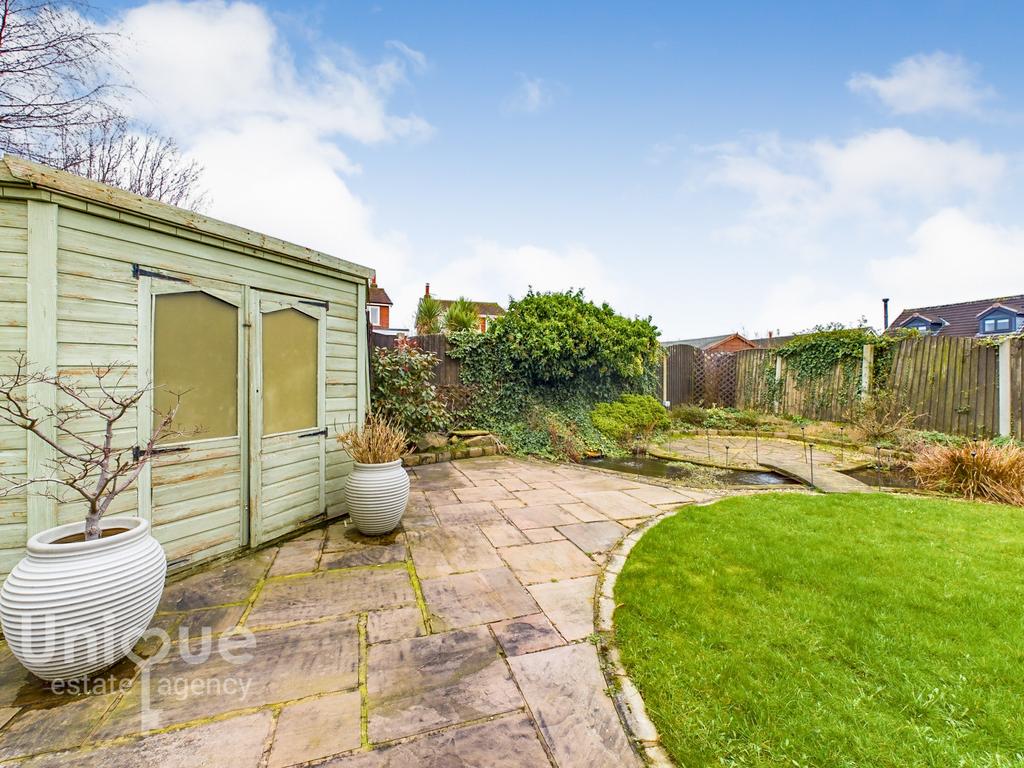 Externally this property affords a very generous plot, driveway leads to single garage. The rear garden is both extensive and fully landscaped. Large Indianan Stone patio, laid to lawn area, feature water feature with bridge over.