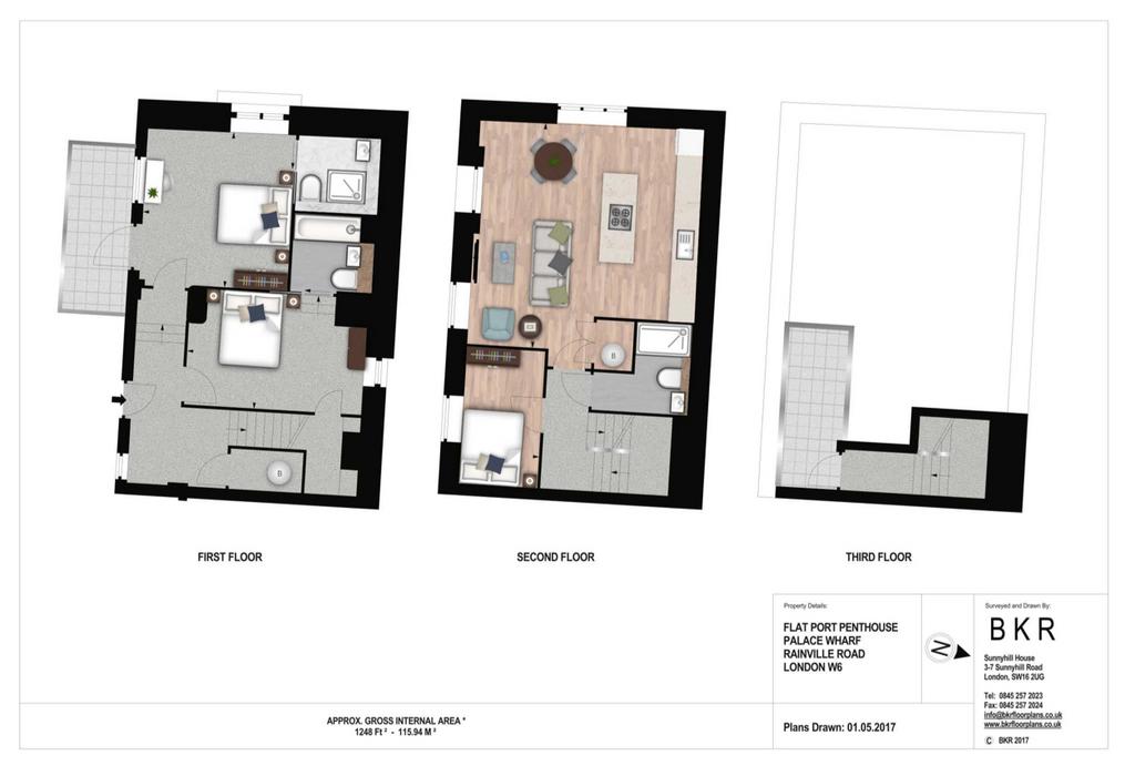 On offer is over 1200 sq/ft of luxury living set over three floors. On the first floor is the master bedroom which boasts not only an en suite shower room but also a balcony whilst the second bedroom also has an en suite bathroom. There is a further third bedroom and shower room on the second floor, a separate laundry room with washer/dryer and spacious kitchen/diner perfect for entertaining. The third floor provides access to the private roof terrace overlooking the river. The fully fitted Metris Kitchen is complete with Miele appliances including an integrated dishwasher, full height fridge freezer, oven, hob and integrated extractor fan as well as a Caple wine cooler. The bathrooms comprise of full bathroom suites with underfloor heating whilst the bedrooms boast bespoke mirrored wardrobes and automatic lights which are sure to impress. Further benefits of the apartment include comfort cooling to the master bedroom and kitchen/diner, a Crestron audio visual system, a digital video door entry system, and pre-wiring for Sky + TV.
