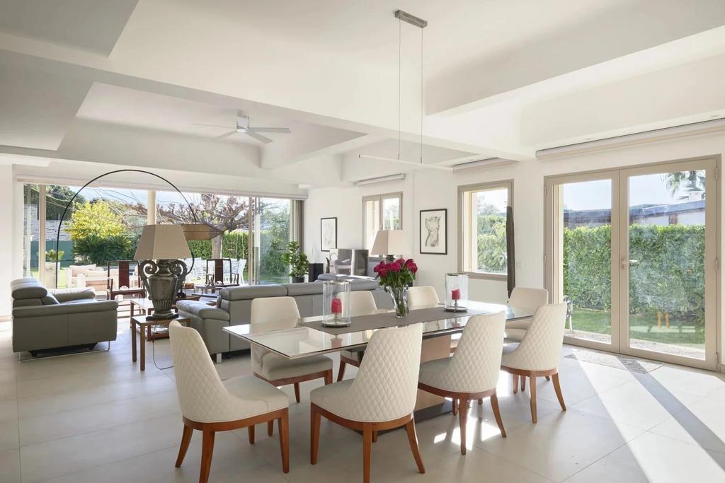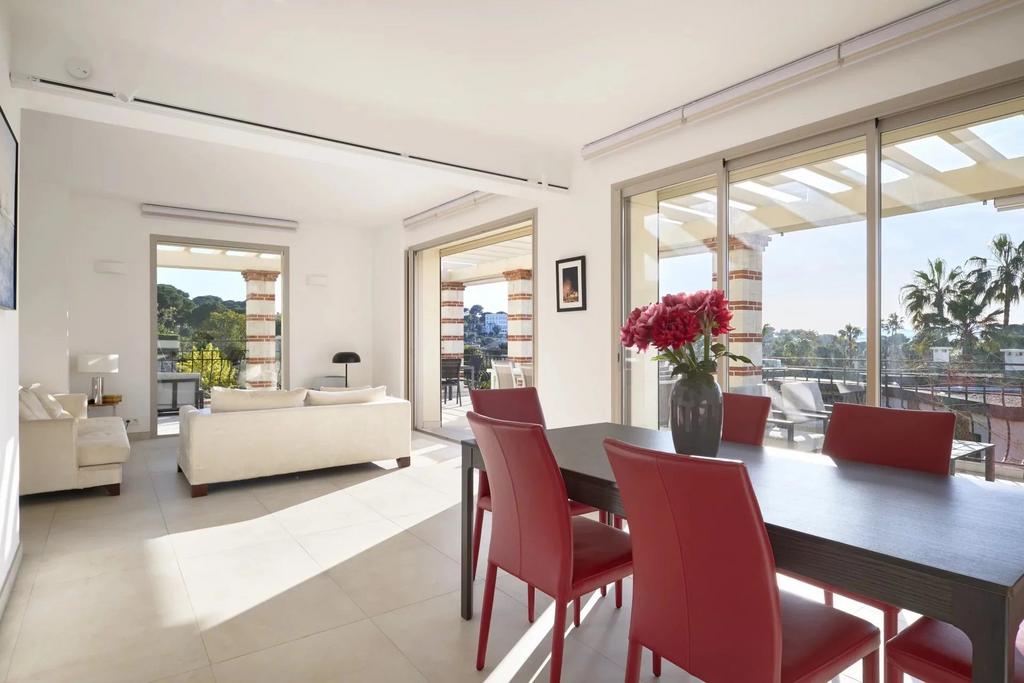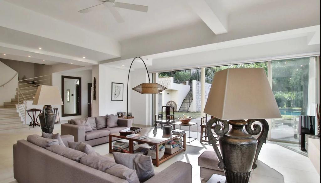 Superb renovated villa built on several floors and enjoying a beautiful sea view. Located on flat land with swimming pool and petanque. Private domain at walking distance to the beaches. Made up of an entrance hall, living room and dining room opening onto garden with swimming pool and a shaded terrace, large fitted kitchen opening onto a shaded terrace and petanque. One en-suite bedroom. 1st floor : two en-suite bedrooms, 2 bedrooms sharing a bathroom, fitted kitchen, living and dining room opening onto a large terrace with sea view. 2nd floor: master bedroom with sea view, bathroom and shower, large dressing room and cinema room. Lounge terrace. Parking spaces and garage. Agency fees payable by vendor