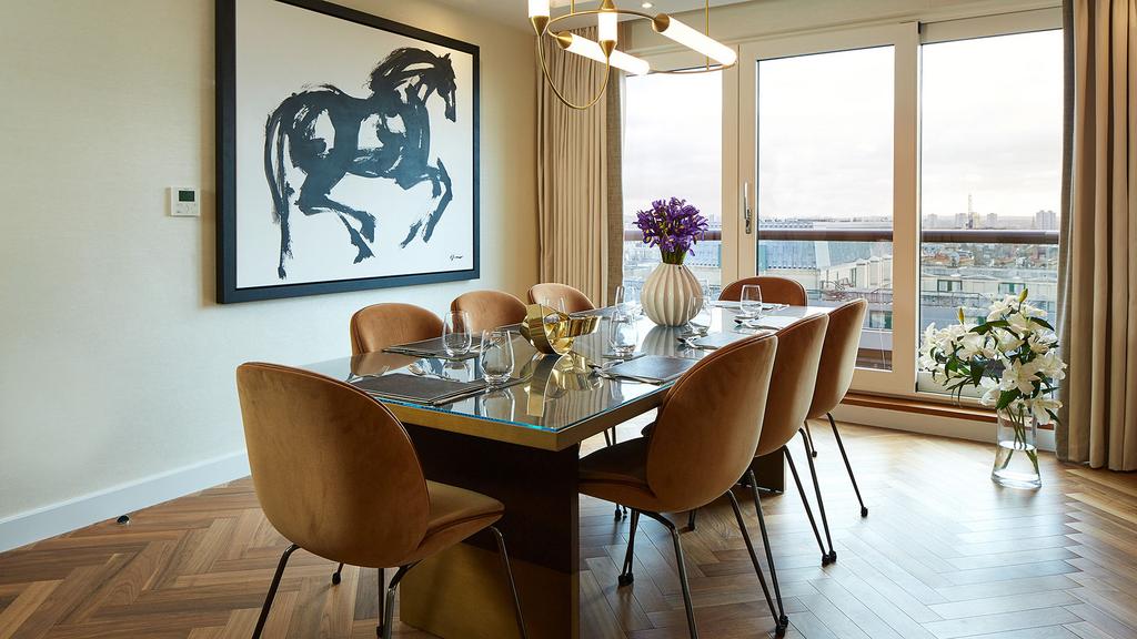 Comfortably sleeping up to nine adults, and designed with an infusion of mid-century style, our Penthouses offer the lavish comforts of an expansive living space in a highly sought-after London district.