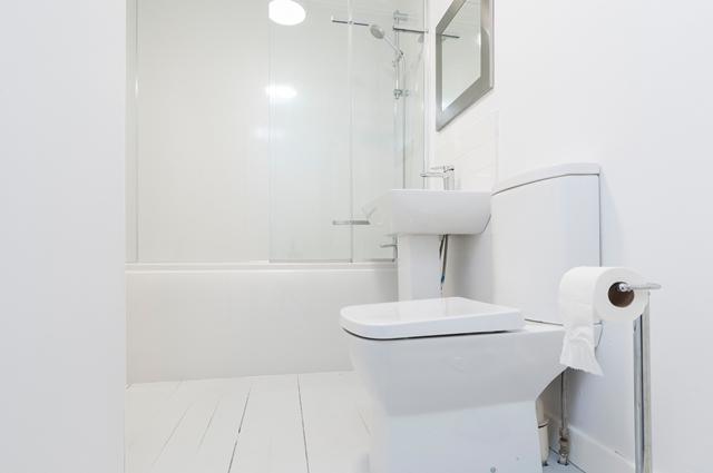 ~Stylish, tiled bathroom with mains shower over bath and three-piece suite