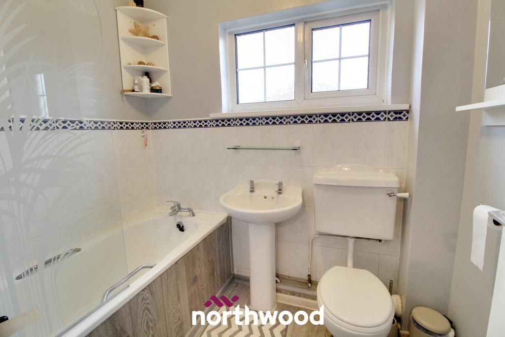 With tilled flooring throughout, wooden high/low level units, complimentary worktops, mosaic tiled splashbacks, uPVC double glazed window to the rear elevation, stainless steel sink with drainer and mixer tap, electric oven and hob, extractor hood, wall mounted Ideal combi boiler within cupboard, space for white goods, spotlight lighting throughout and double radiator.