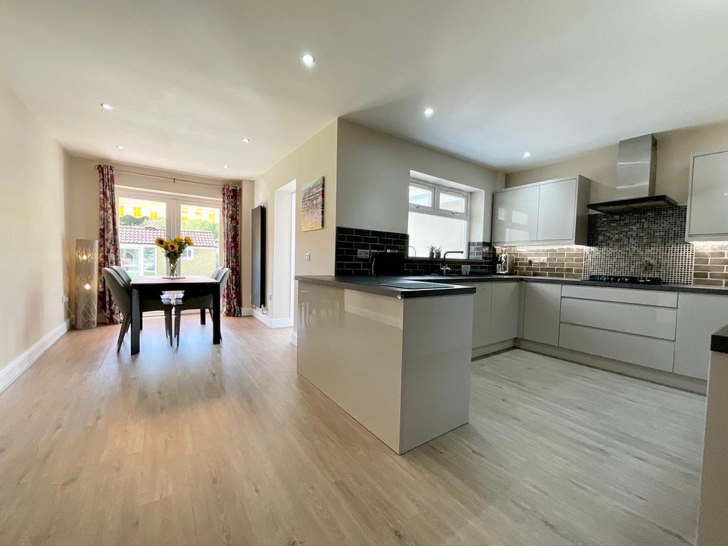 The entrance hall features stairs to the first floor and access to a cloakroom/w/c. Dual aspect the spacious lounge with wood burner opens to the rear garden with a further double door leading to the kitchen/diner. Recently fitted with contemporary gloss units, integrated appliances and a peninsular breakfast bar, the open plan kitchen features a dining area with with French doors to the garden. A utility room with heated floor and glass roof leads to the garden. The original sitting room is currently utilised as an office and benefits from a bay window, feature fire place and access to the under stairs storage cupboard.