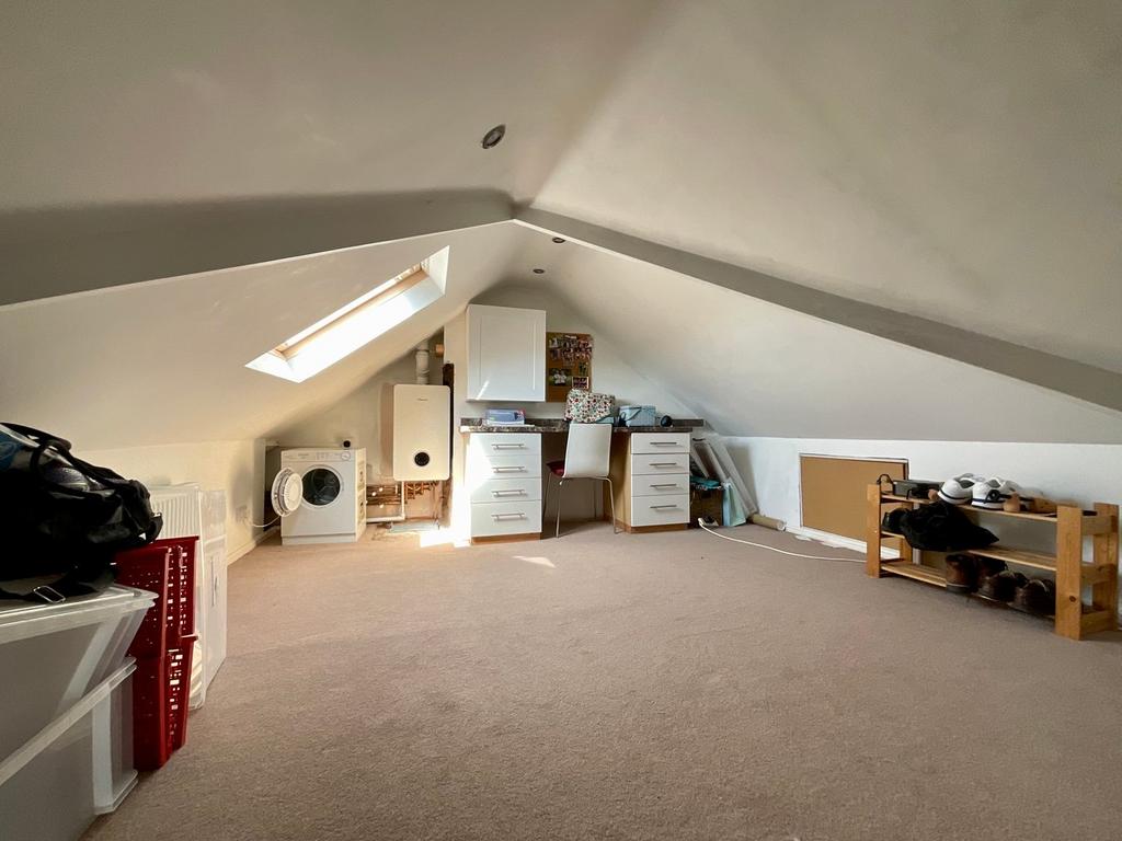 Upstairs the landing provides access to 3 double bedrooms. The master having built in wardrobes, a Juliet balcony over looking the rear garden and en-suite shower room. A staircase from the 2nd bedroom leads to a large useful loft space, being fully boarded & lined with power & light, Velux windows to the rear and a built in study desk.