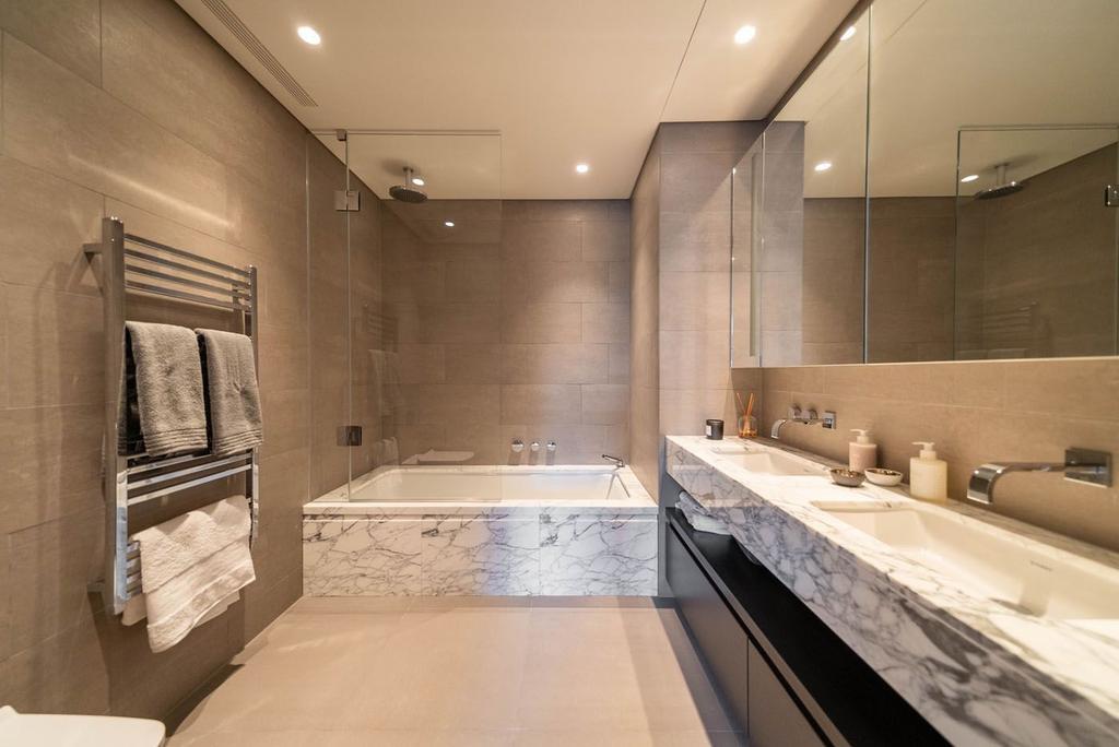 Experience an unparalleled level of privacy and comfort in this thoughtfully crafted apartment, featuring two generously sized double bedrooms and two bathrooms. The master bedroom is a sanctuary of indulgence, with beautiful wardrobe and an en-suite bathroom that exudes relaxation with a rejuvenating rain shower, a freestanding bathtub, and elegant his and hers washbasins. The second bedrooms offers high-quality fixtures and fittings, ensuring a heightened sense of refinement and convenience for residents.