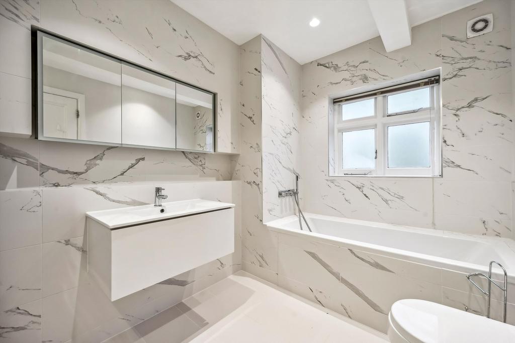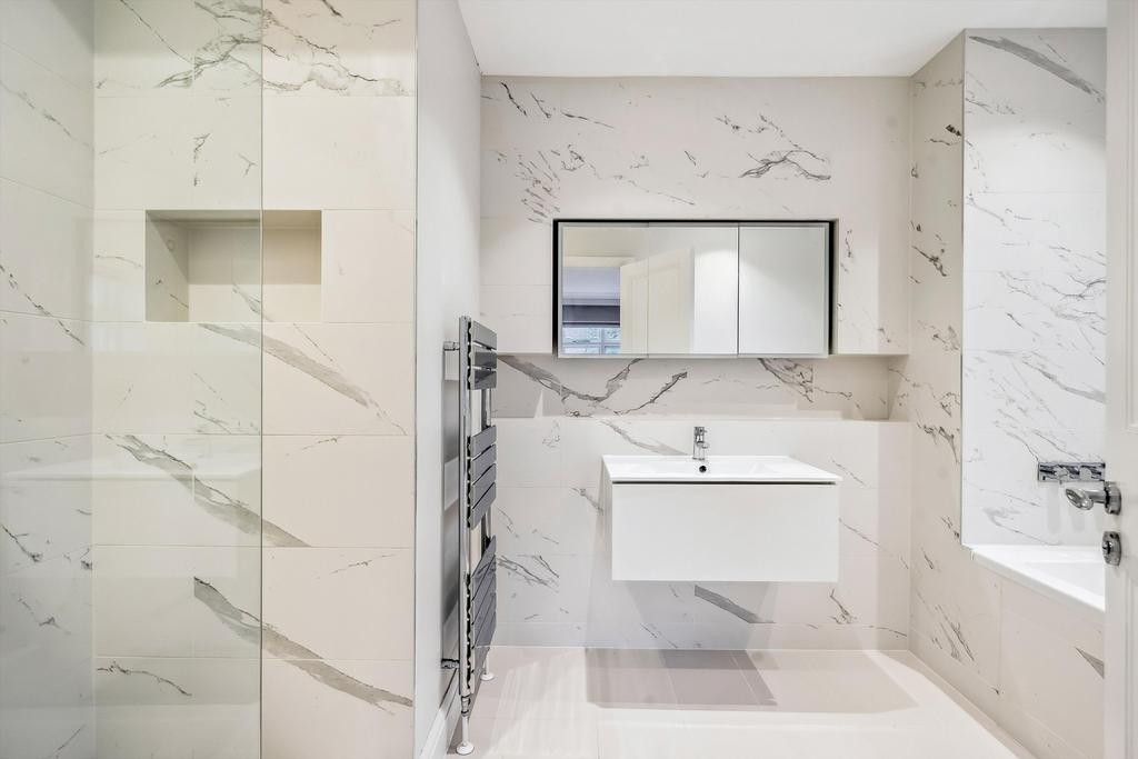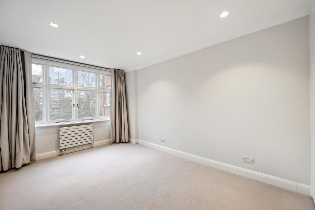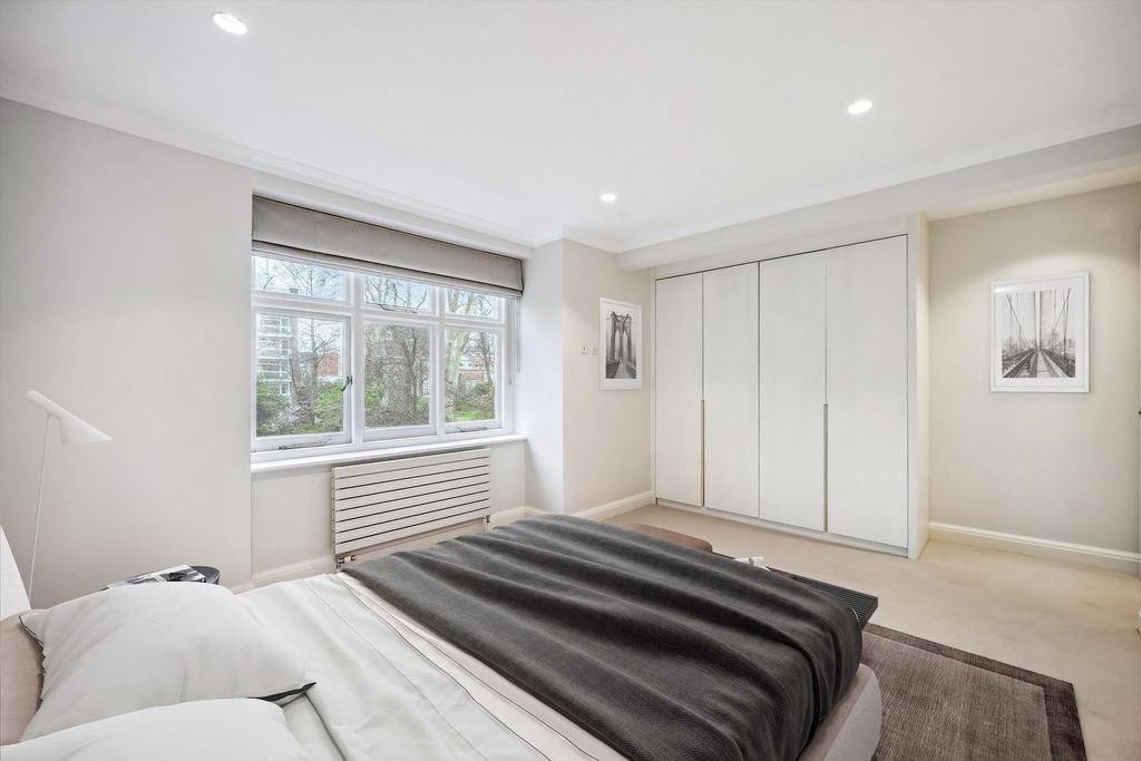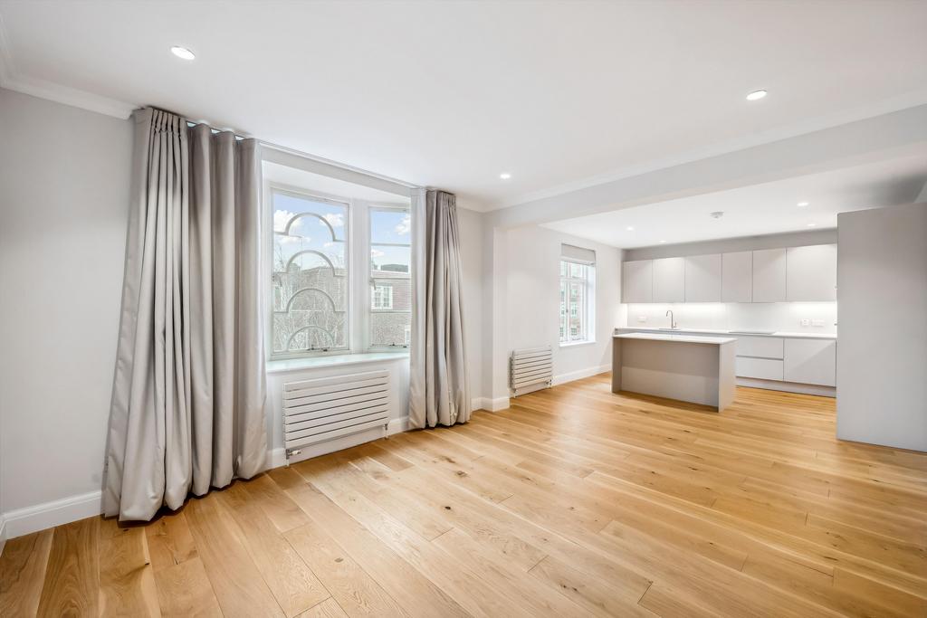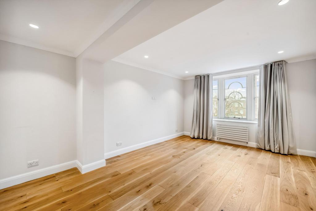 This residence epitomises elegance and tranquillity, featuring a splendid reception room adorned with lofty ceilings and picturesque vistas overlooking serene private communal gardens.