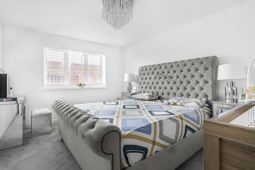 A modern four bedroom detached property with driveway parking and open-plan kitchen / dining room situated within a popular development in Grove with no onward chain.