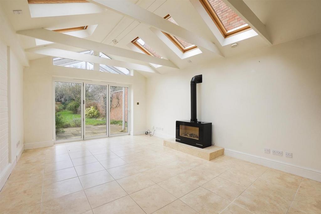 Entrance hall with stairs rising to the upper floor, WC / Cloaks and panel doors off. The lounge is located to front, has a bay window, feature fireplace and double opening doors to the dining kitchen. This open plan space provides ample room for a dining table and chairs, whilst seamlessly linking with a modern, equipped kitchen. A door then leads through to a useful utility and ground floor shower room and a further opening to an impressive family / garden room, which is filled with natural light through an expanse of bifold doors to rear and Velux roof lights, and a log burner provides a cosy focal point.