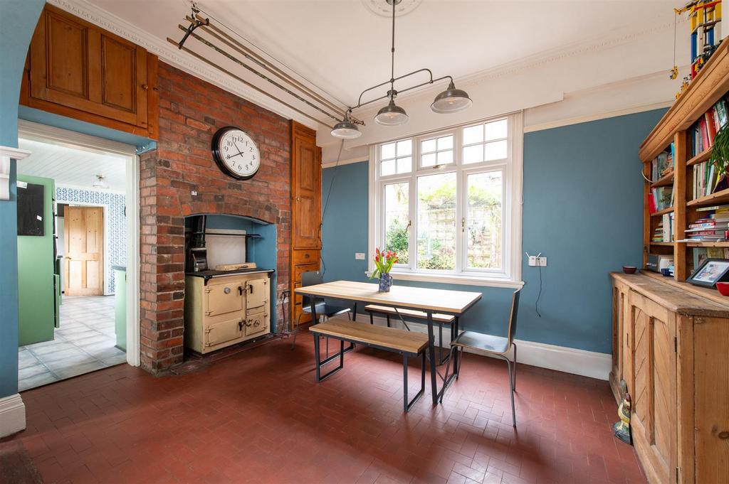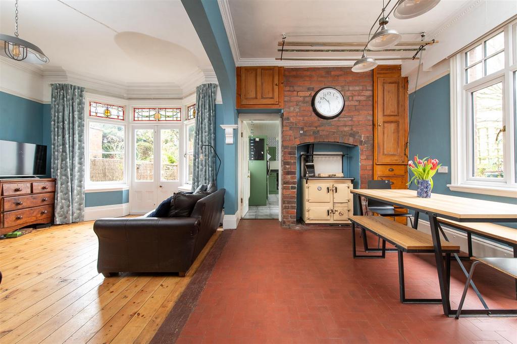 Lounge/Diner - 6.71m x 4.17m (22'0" x 13'8") - The heart of the home with the wonderful feature Rayburn, decorative fire surround, double doors to the rear garden, beautiful herringbone terracotta tiled floor, double glazed window, two single glazed windows, central heating radiator and door into the kitchen.