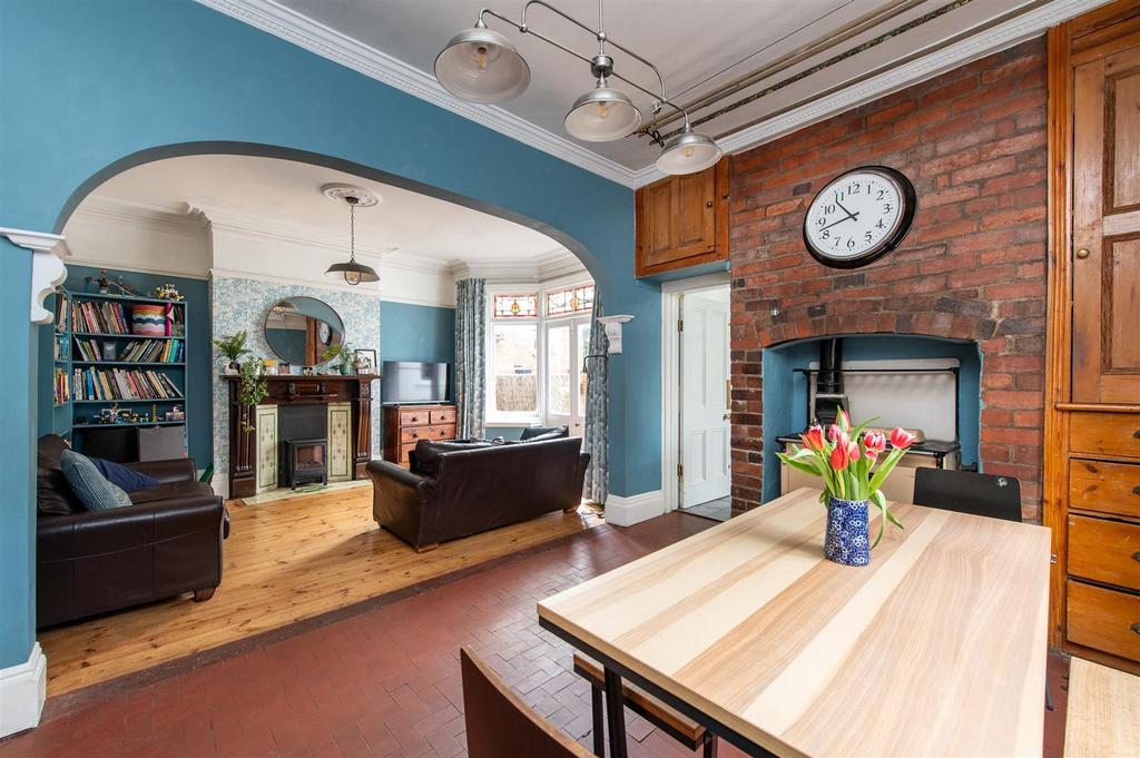 The entrance porch gives access to the welcoming entrance hall having stairs rising to the first floor and access into the cellar, impressive living room and spacious lounge/diner. The kitchen sits to the rear having utility and downstairs WC off.