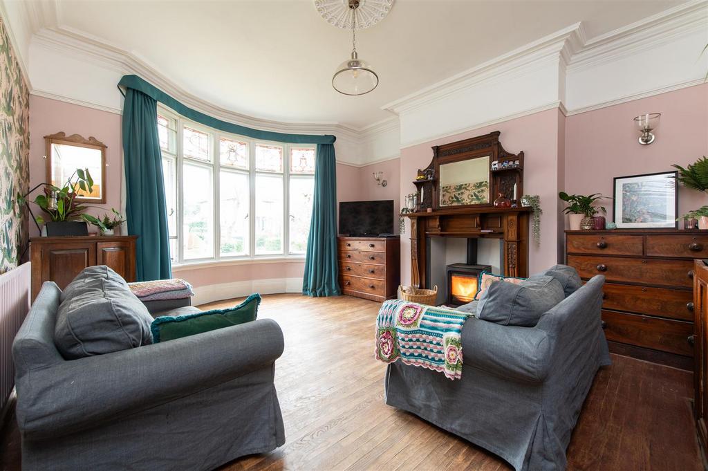 Living Room - 4.47m x 4.19m (14'7" x 13'8") - Feature fire surround with log burner, single glazed bay window with secondary glazing and central heating radiator.