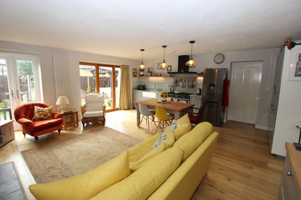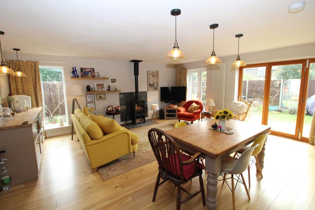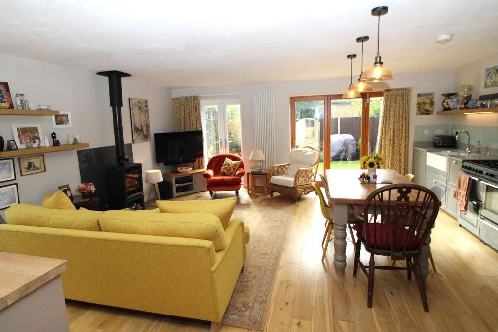 Large vertical double glazed window to the side elevation. Double glazed French doors to the rear elevation. Double glazed bi-fold doors providing access to the rear garden. Engineered oak floor. Contemporary vertical style radiator. A 5kW log burning stove provides the main focal point, this is set on a porcelain tiled hearth.