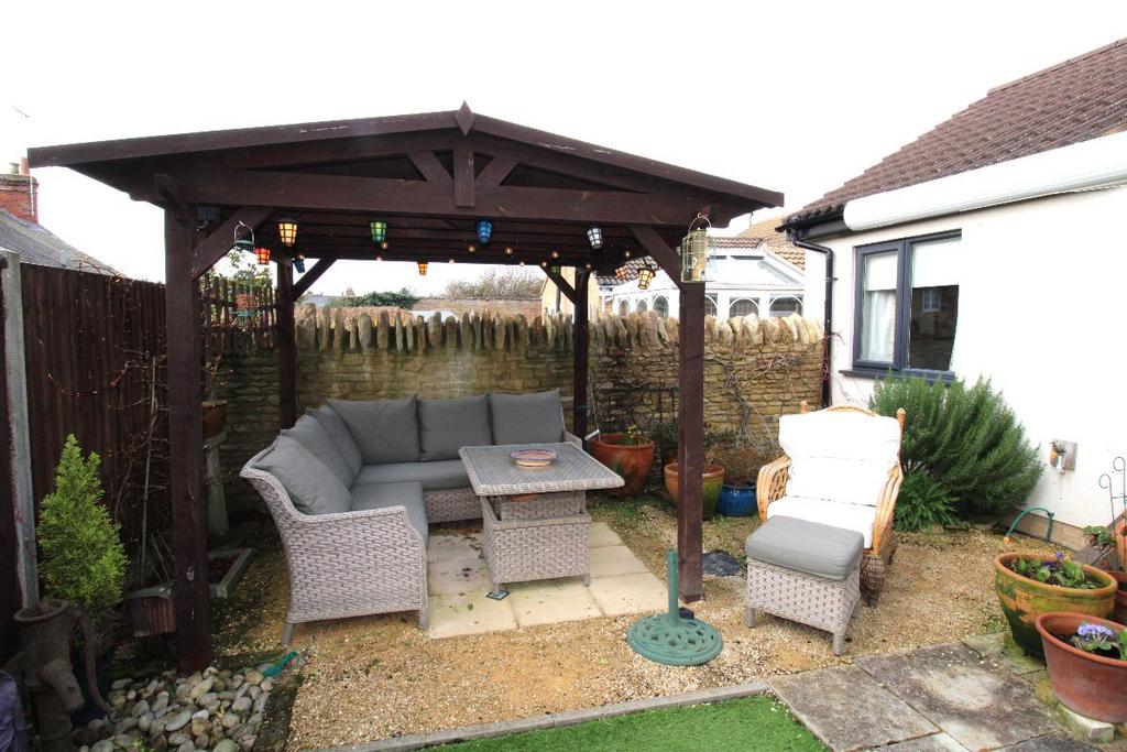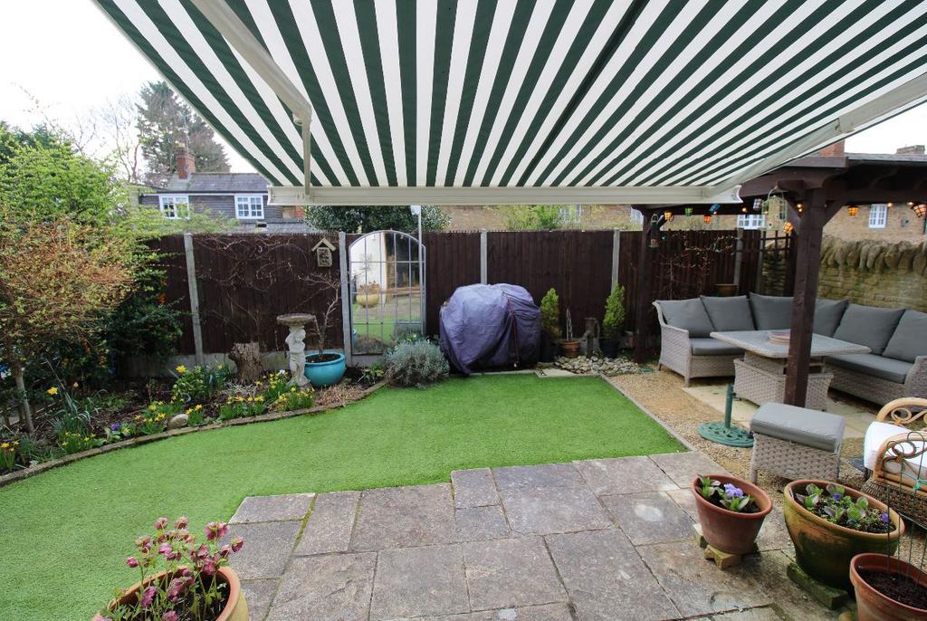 This attractive low maintenance rear garden enjoys a southerly aspect and is bound partly by a new stone wall. The garden comprises a paved patio area, artificial lawn with flower and shrub borders. The garden is divided into several zones, with a timber pergola providing a sheltered seating area and a rose arch set within trellising leads through to a vegetable/herb garden. The garden benefits from infrastructure for an irrigation system and an automated sun canopy provides a further benefit to this wonderful garden.