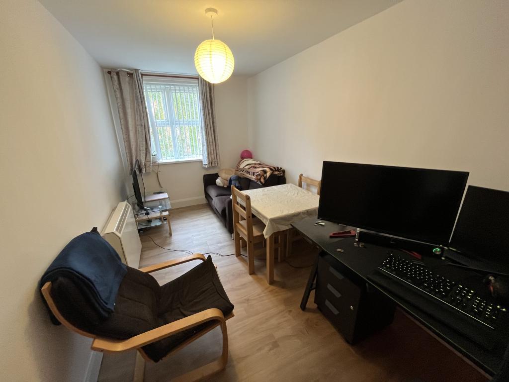 This property comprises of a modern separate kitchen/living room with two double bedrooms, a bathroom. Each room comprises of the following: Bedroom furnished with a double bed, built-in wardrobe with drawers and a study table with chair. Bathroom fitted with a 3 piece white suite with a shower over cubicle. Living room furnished with a dining table with chairs, coffee table, and sofas. Kitchen fitted with a full-size fridge/freezer and washer/dryer.