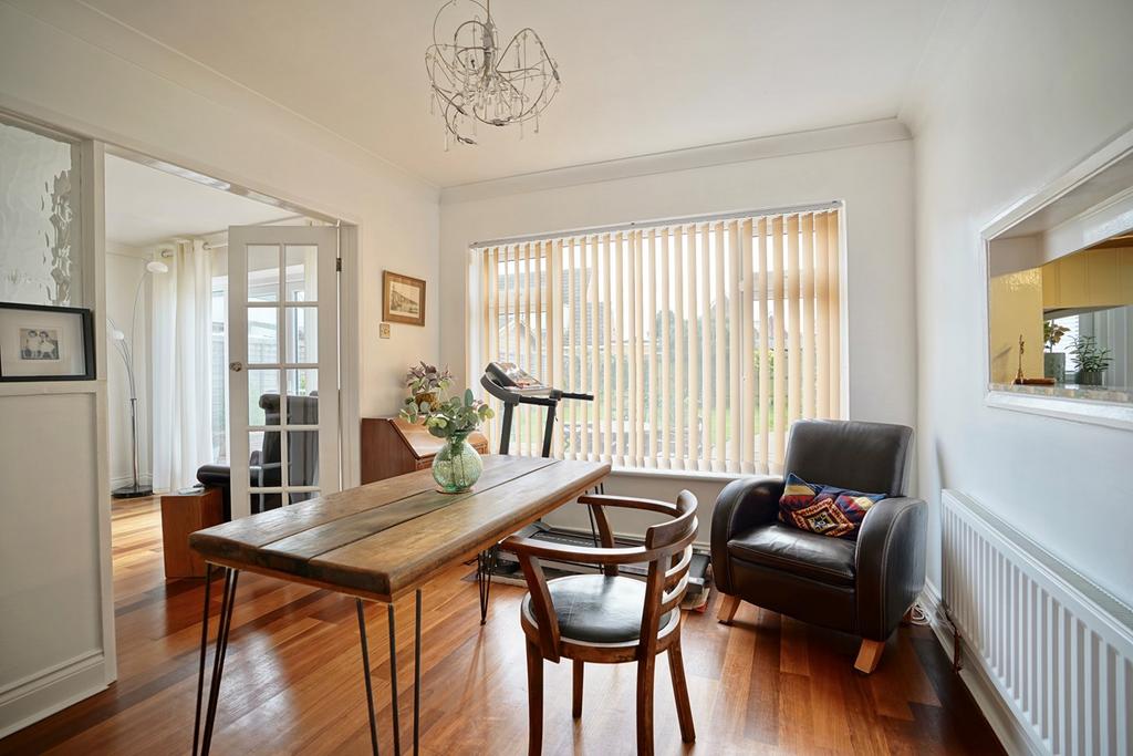 Two double glazed widows to front aspect, coving to ceiling, radiator, decorative panel work, laminate flooring.