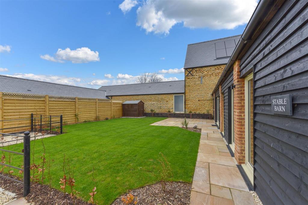 This stylish four bedroom period barn conversion forms part of the five dwelling settlement of Wellingborough Grange Farm located in open countryside only two miles to the north of Wellingborough. The Stables has been converted to a high standard with Villeroy and Boch sanitiary ware to the three bath and shower rooms and includes a superb 35 foot long open plan Kitchen/living room with English oak flooring which continues through the reception hall. Both master and guest bedrooms have en suite shower rooms and there is a further family bathroom. Externally the property has a private west facing lawned garden and three private off road parking spaces.