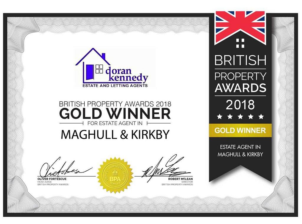 Established, family run, independent Estate Agents with an Award Winning Sales & Letting Department. Winner of British Property Awards (Gold Award) Estate Agent in Maghull & Kirkby May 2018. Winner of British Property Awards (Gold Award) Letting Agent in Maghull & Kirkby October 2018.