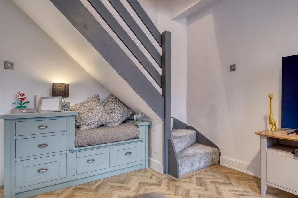 Upstairs, you'll find two generously sized bedrooms, offering comfortable accommodations for residents and guests alike. The master bedroom boasts excellent space for wardrobes, providing ample storage space and adding a touch of convenience to the room. Adjacent to the bedrooms, the family bathroom features a shower over the bath, offering a luxurious and relaxing space to unwind after a long day.