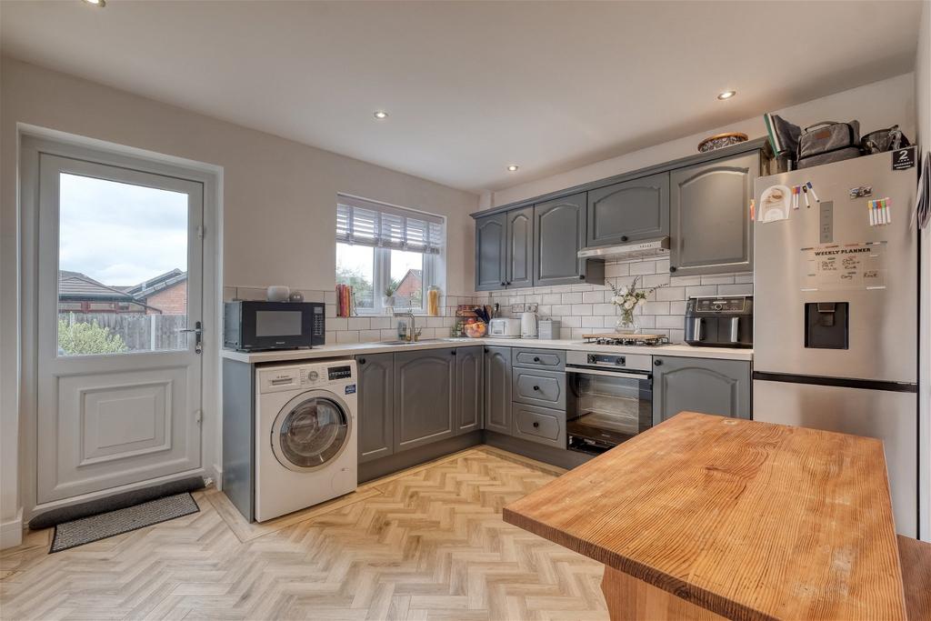 As you enter the house, you're greeted by the inviting lounge, where natural light floods the room, creating a warm and welcoming atmosphere. Continuing through, the kitchen at the rear of the property provides a sleek and functional space for cooking and dining. With access to the landscaped garden and patio area, this kitchen becomes the heart of the home, perfect for indoor-outdoor living and entertaining.