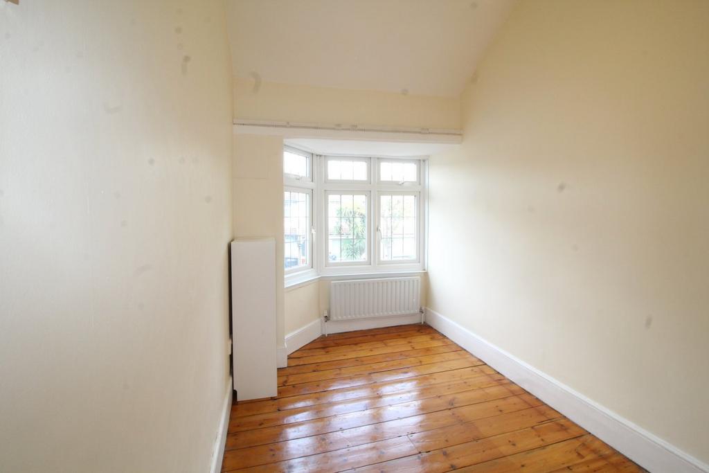 Double glazed leaded light casement windows into half splay bay, radiator, power points, pine stripped flooring.