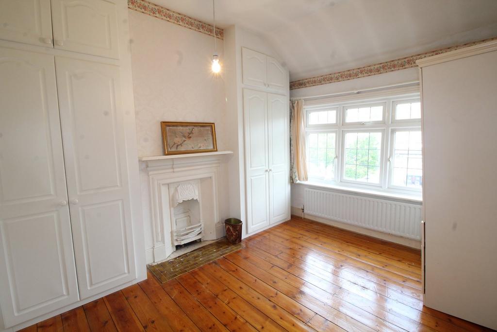 Double glazed casement windows overlooking rear garden, radiator, cast iron feature fireplace, two double fitted wardrobes, fitted cupboard and drawers, power points, pine stripped floor.