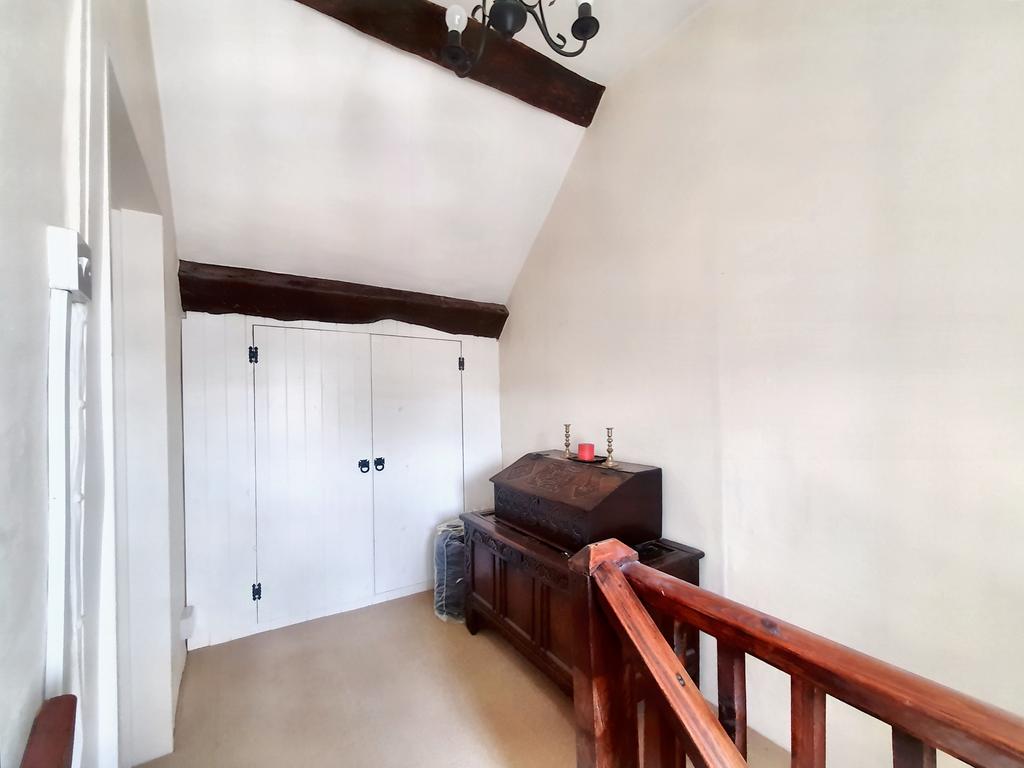 Second FLOOR LANDING with carpeted stairs and landing, new Velux skylight, exposed beams and two storage cupboards.