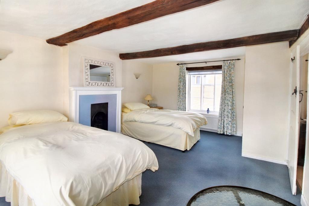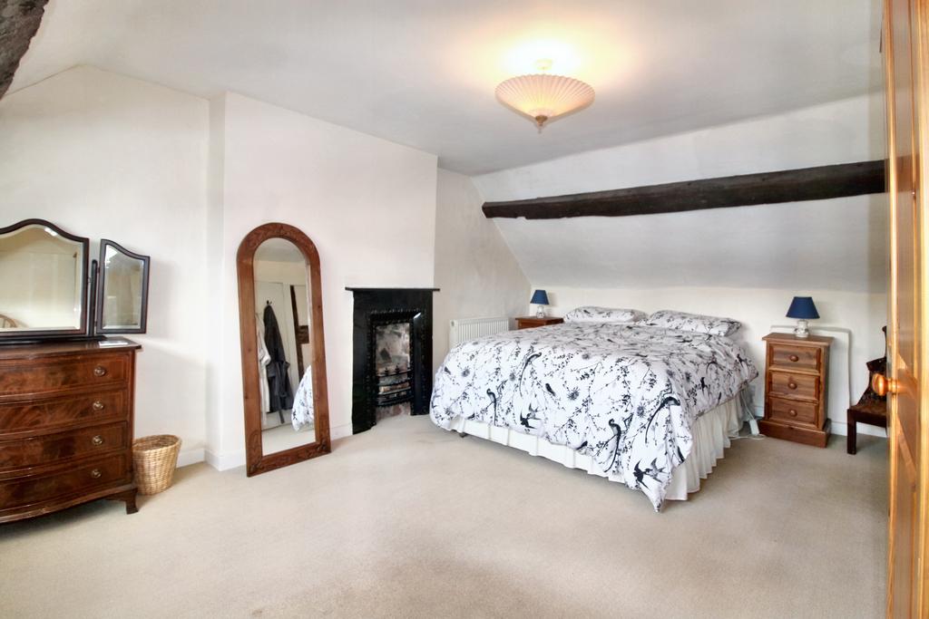 BEDROOM 3 (5.30m x 3.60m approx)(17'3" x 11'8" approx) with carpet, two radiators, exposed beams, original open fireplace and window with stunning views of the surrounding hills,