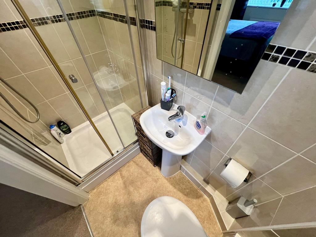 UPVC double glazed opaque window to the side aspect, low flush w.c, wash hand basin, walk in shower cubicle.