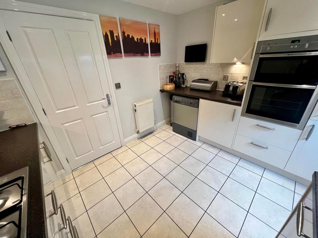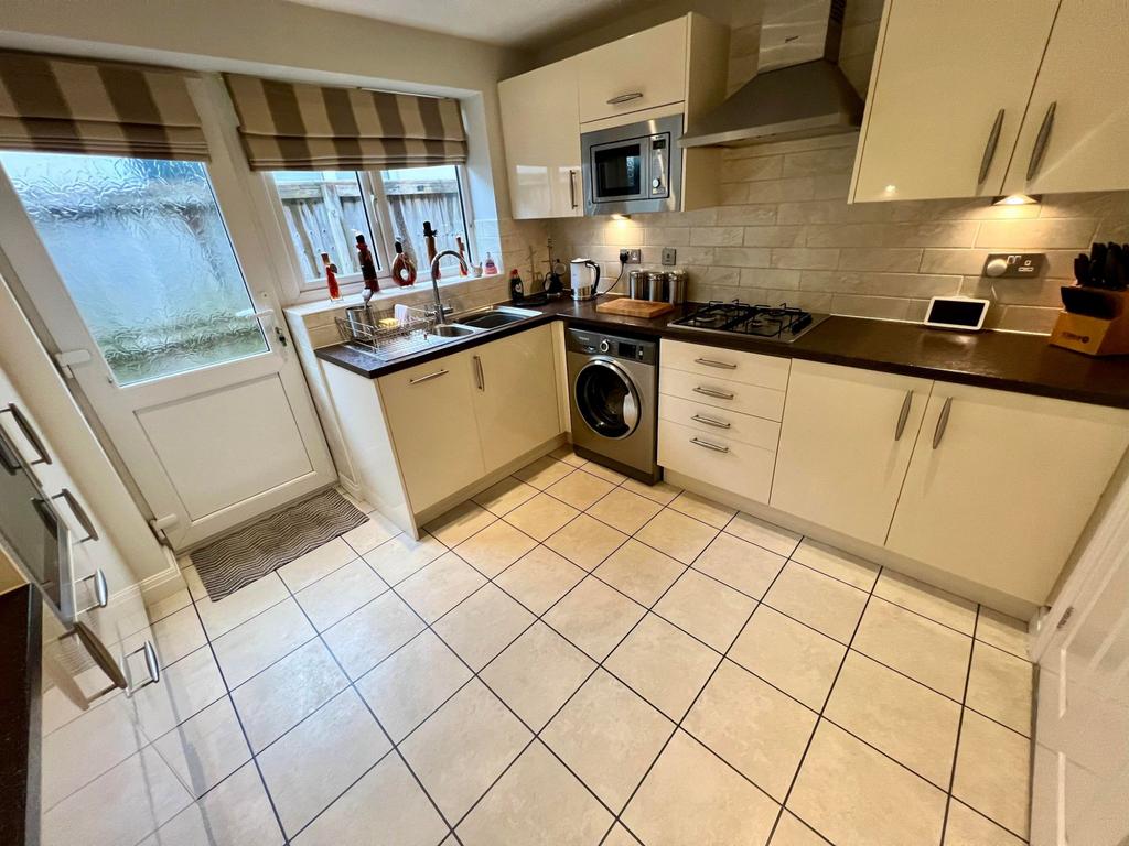 UPVC double glazed window and door to the side aspect, modern fitted kitchen comprising of; wall and base units, complimentary work tops, hob with extractor fan over, plumbed for washing machine, stainless steel sink and drainer with mixer tap, integrated oven and grill, plumbed for dishwasher, radiator.