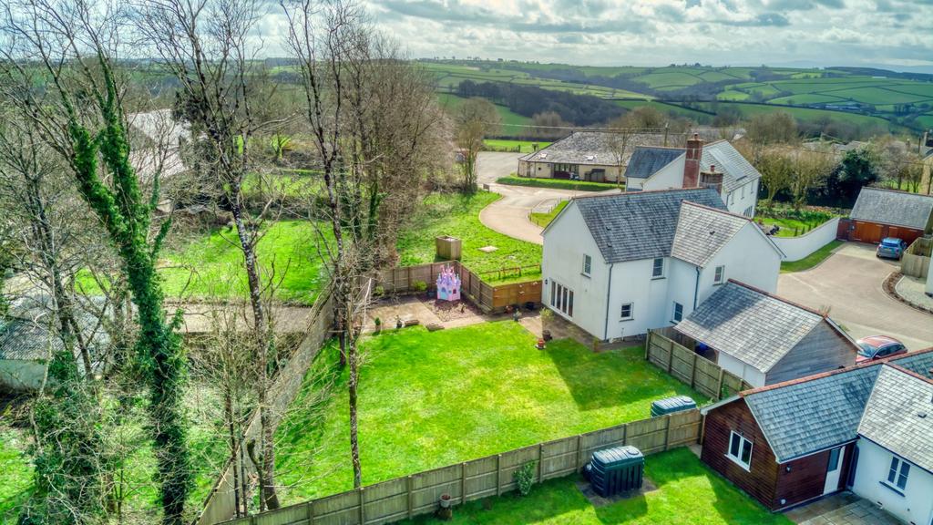Located on the edge of the popular village of Kings Nympton, Orchard House occupies a superb corner plot within this private and select cul-de-sac of just six dwellings. This smart executive style detached family home was constructed by reputable local builders, Mazzard Homes in 2018. Offering a traditional country feel, it is finished to a high standard providing a well presented and spacious four bedroomed accommodation, designed to be practical, modern and energy efficient. Occupying large plots, the developers placed considerable thought into this exclusive collection of properties, providing light, space and privacy between each dwelling.