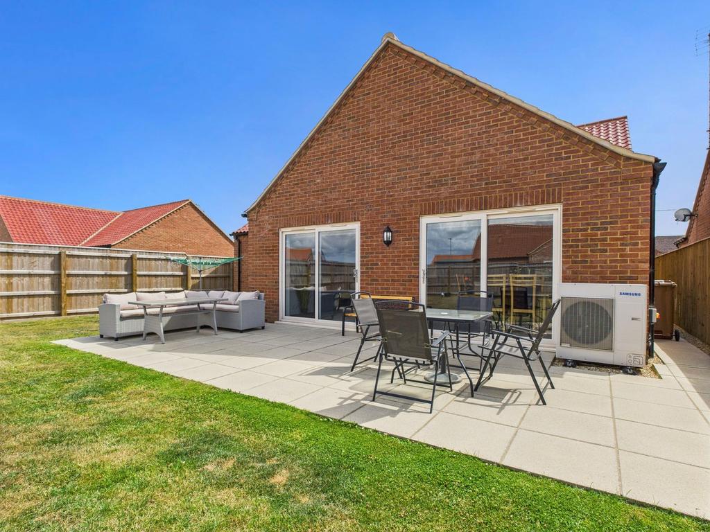This well presented detached bungalow has an open plan kitchen/living/dining room with two double patio doors onto the rear enclosed garden which has a spacious patio plus a lawn area. The modern kitchen has integrated appliances including a washing machine, fridge freezer and dishwasher. There are 3 bedrooms the master having an en-suite shower room plus a family bathroom. To the front of the property is a gravelled driveway leading to the garage. The garage has electric doors plus an internal door to the hallway and a Utility area.