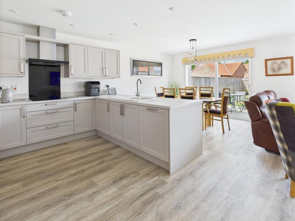 22' 10" x 19' 11" (6.96m x 6.07m) Kitchen: Fitted with a range of wall and base units with roll edge worktop incorporating a sink and drainer with mixer tap. Double oven. Hob. Extractor Hood. Integrated dishwasher, washing machine and fridge freezer. Luxury Vinyl Tiled Flooring.